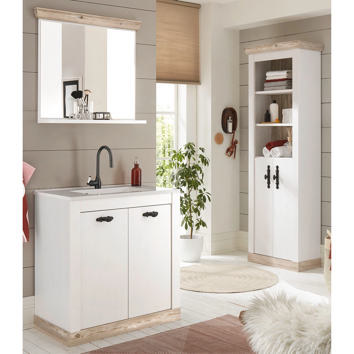 - Contenu de la livraison : Ensemble de salle de bain comprenant 1 meuble avec vasque en fonte minérale, 1 armoire colonne et 1 miroir