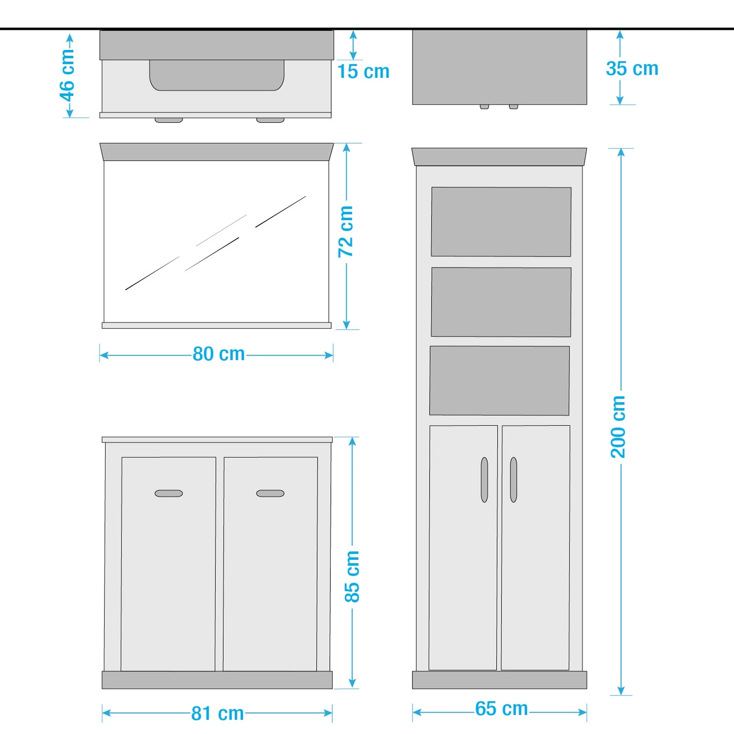 - Meuble avec vasque (LxHxP) : 81 x 85 x 46 cm