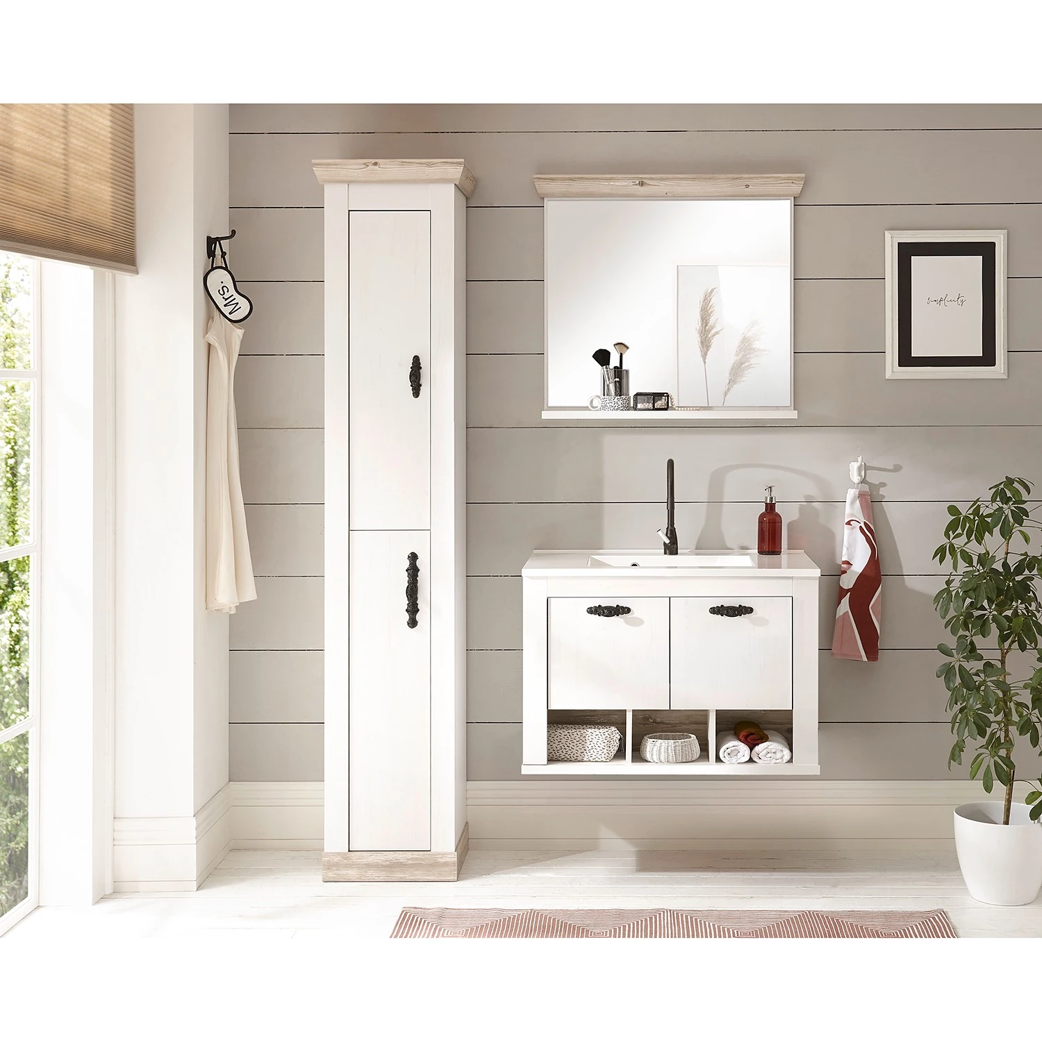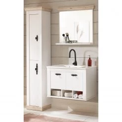- Contenu de la livraison : Ensemble de salle de bain comprenant 1 meuble avec vasque en fonte minérale, 1 armoire colonne et 1 miroir