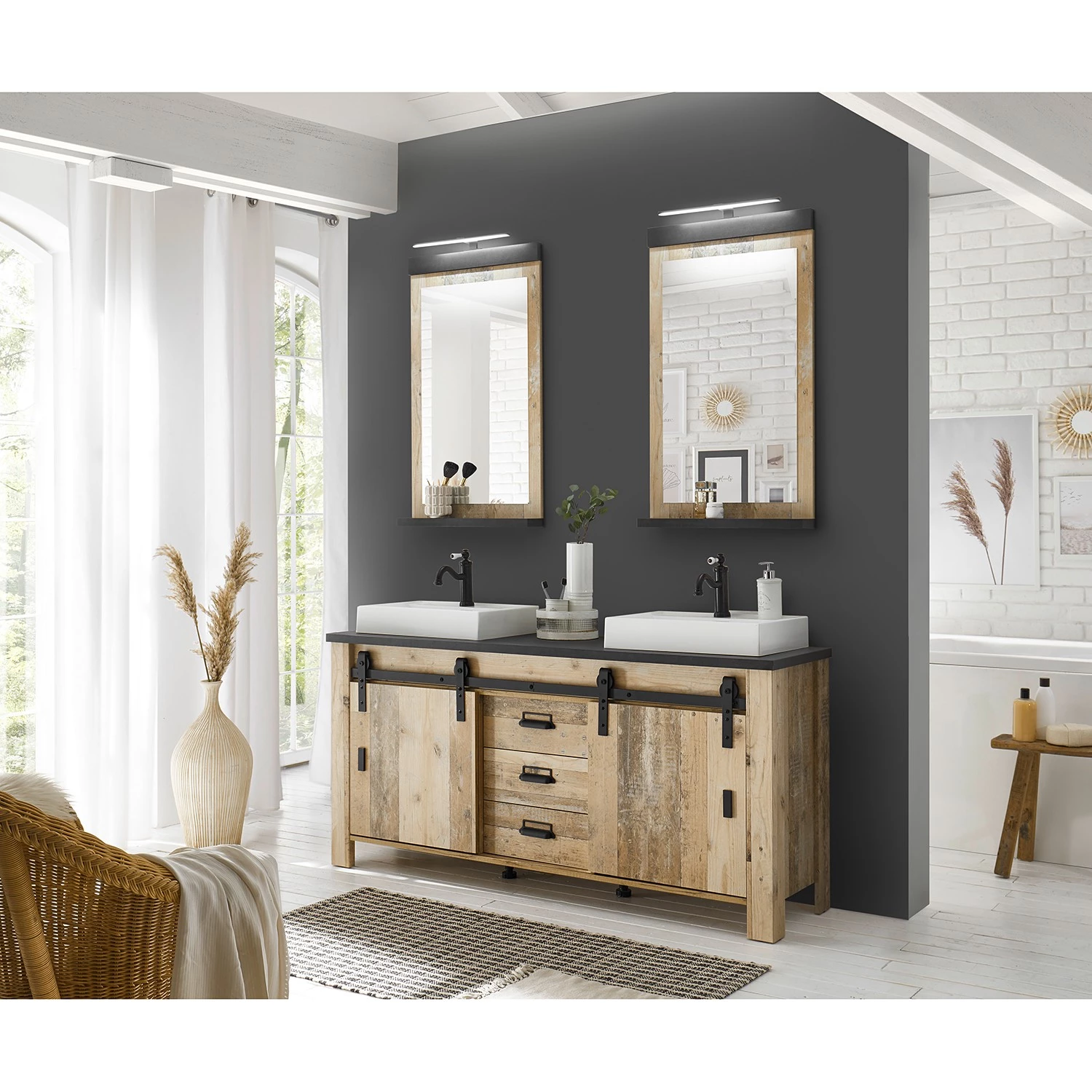 - Contenu de la livraison : Salle de bain comprenant 2 miroirs et 1 meuble avec vasque en fonte minérale, avec éclairage et sans accessoires