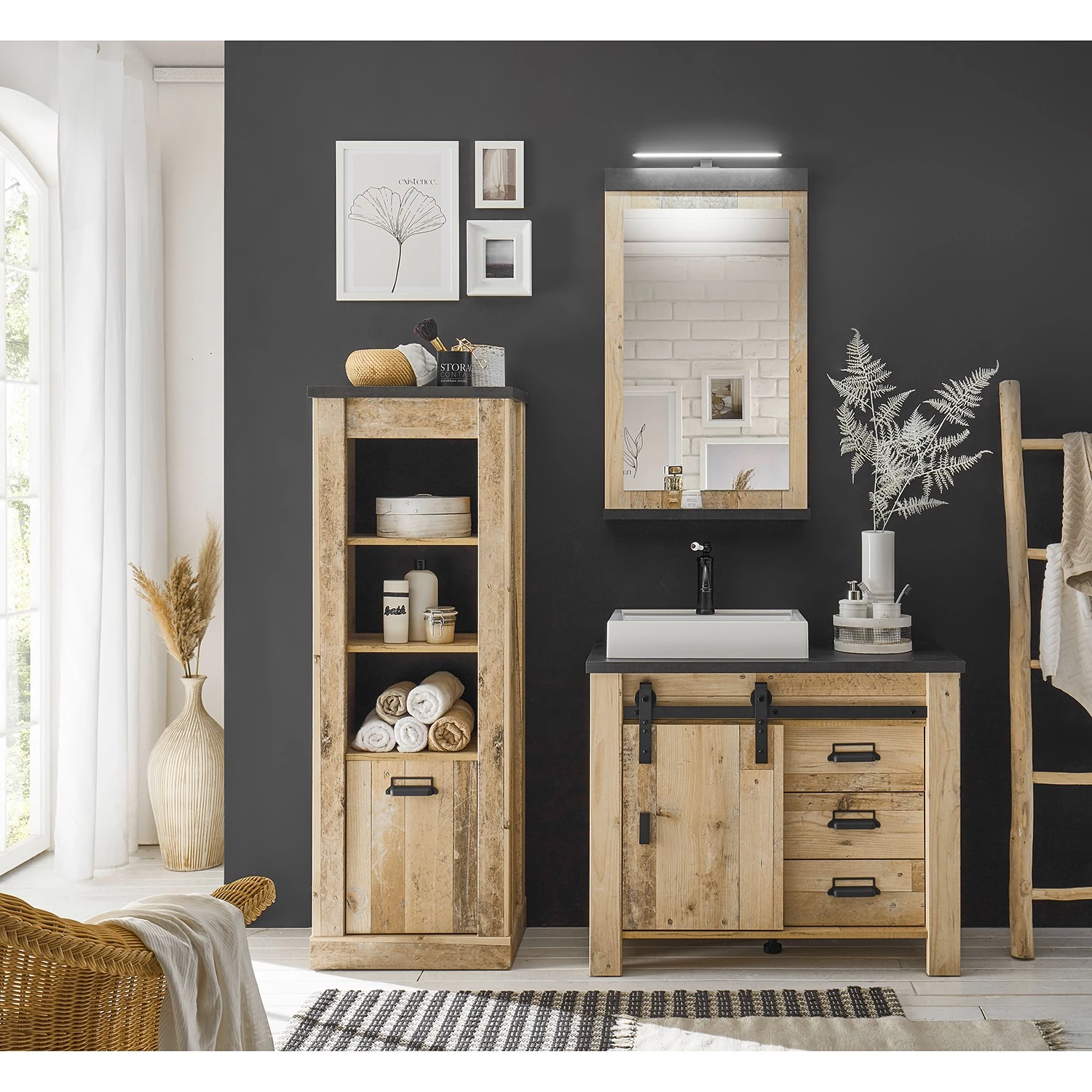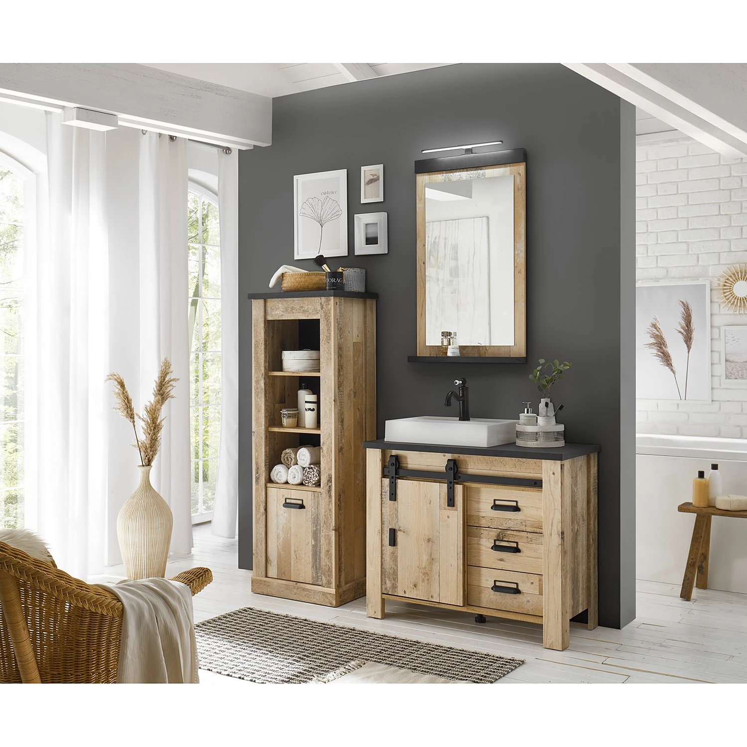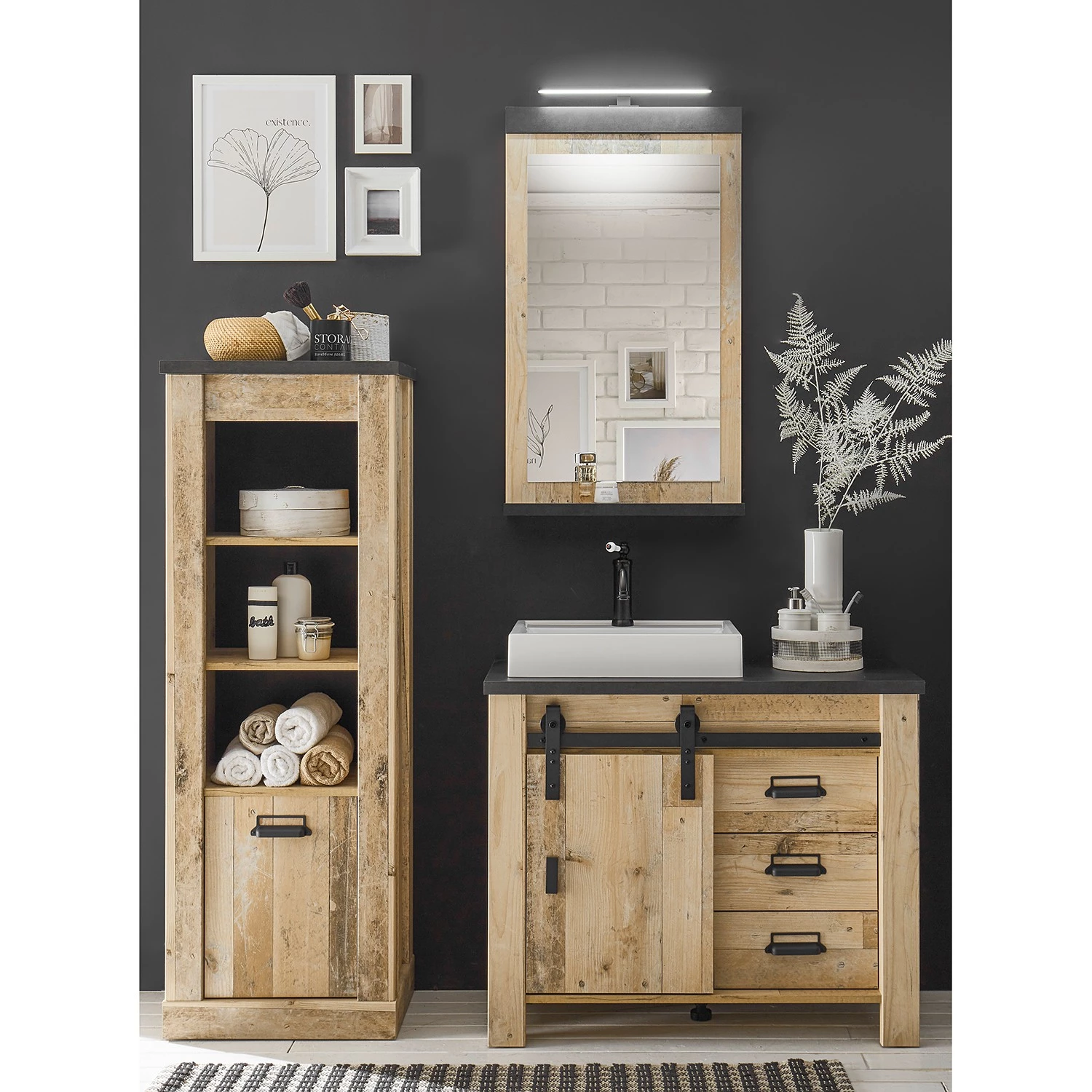 - Contenu de la livraison : Salle de bain comprenant 1 miroir et 1 meuble avec vasque en fonte minérale, avec éclairage et sans accessoires