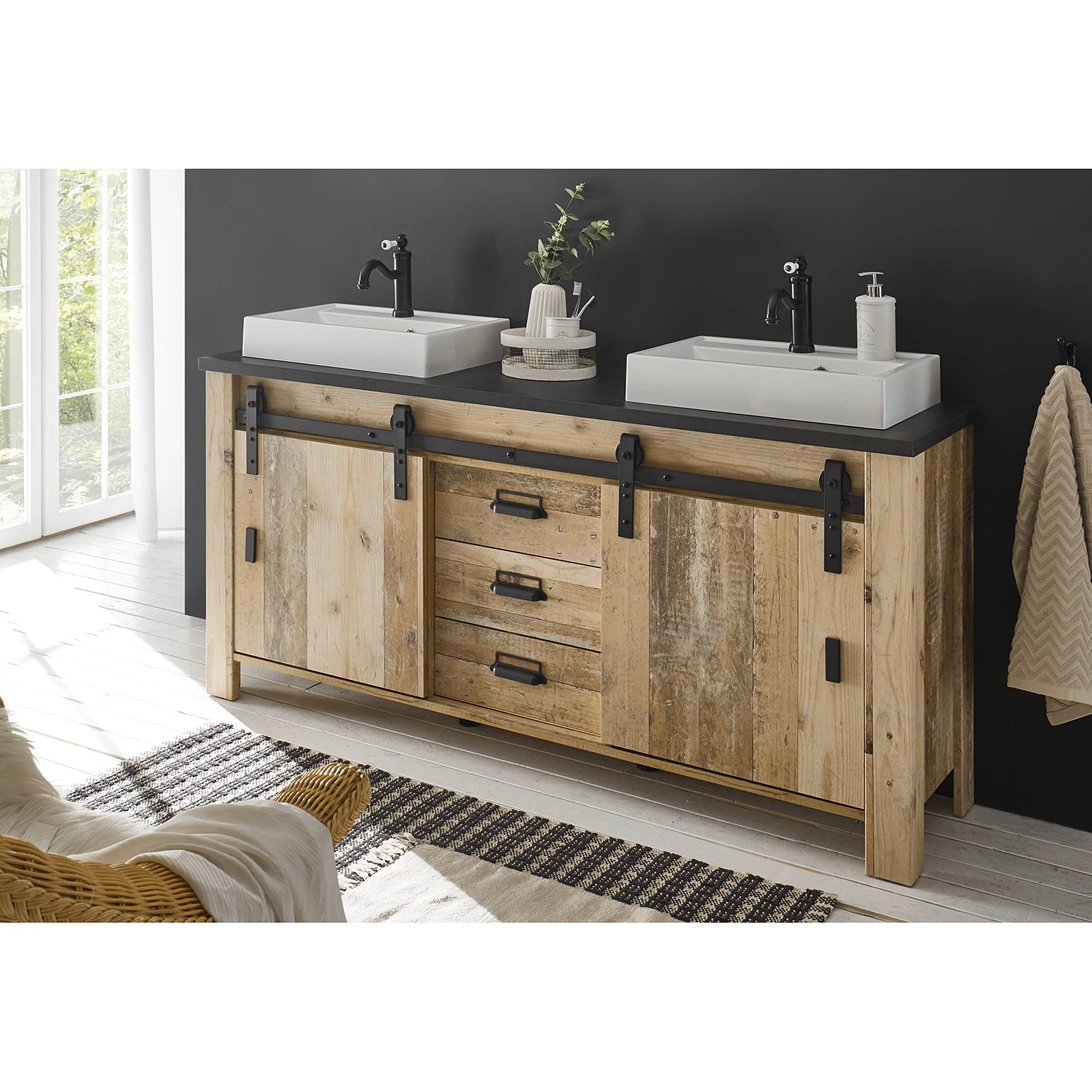 - Contenu de la livraison : Salle de bain comprenant 2 miroirs avec éclairage, 1 armoire, 1 meuble avec vasque en fonte minérale, sans accessoires