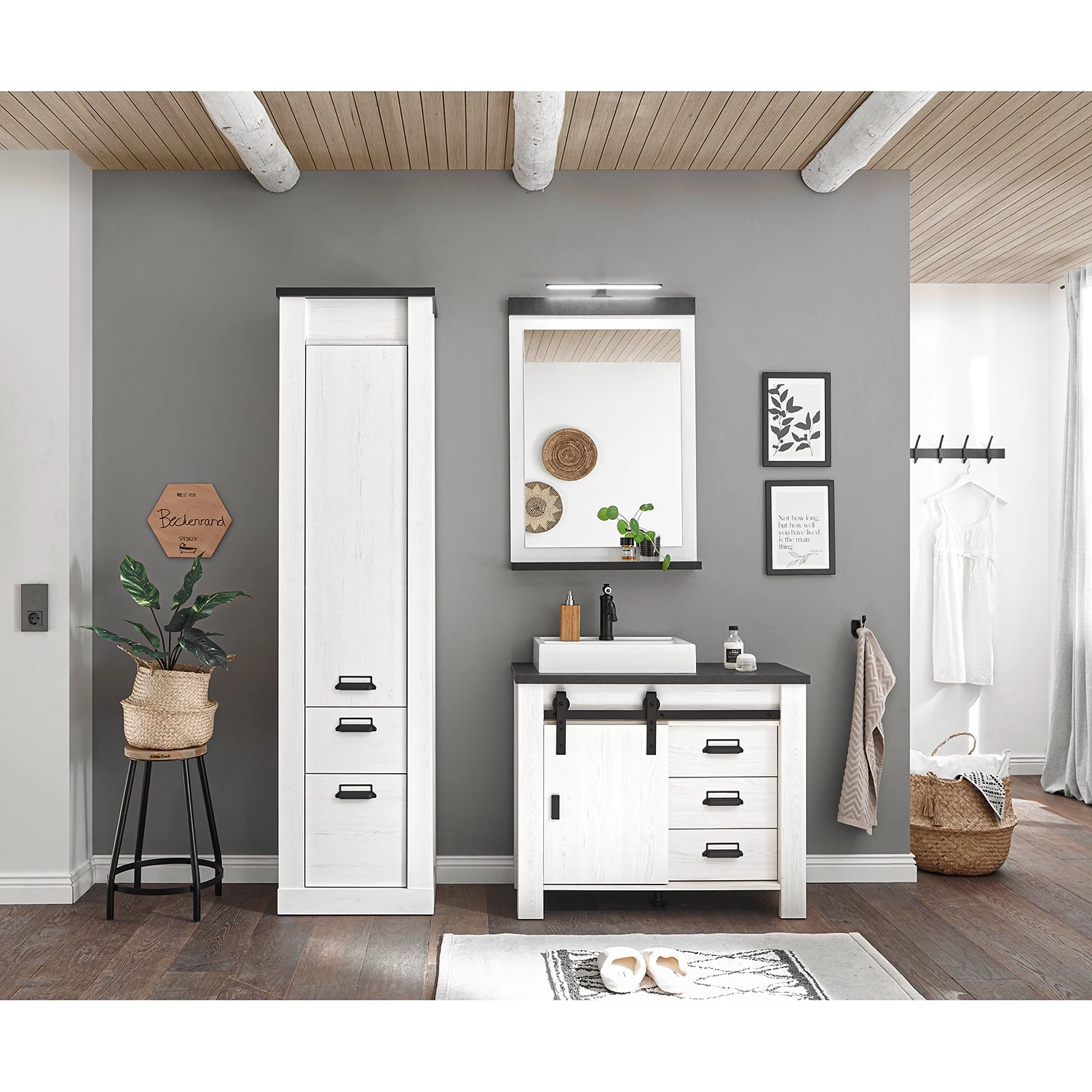 - Contenu de la livraison : Salle de bain comprenant 1 miroir et 1 meuble avec vasque en fonte minérale, avec éclairage et sans accessoires