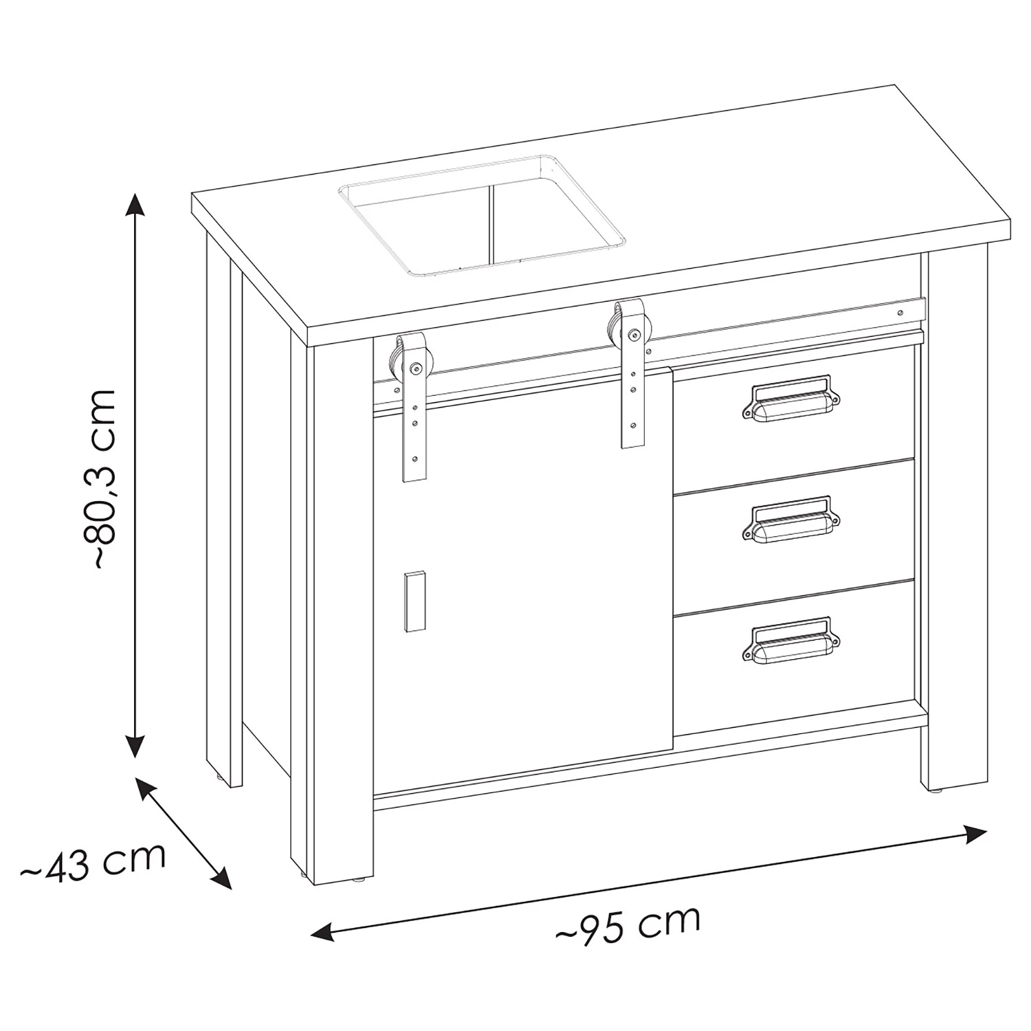- Meuble avec vasque : 95 x 91 x 43 cm