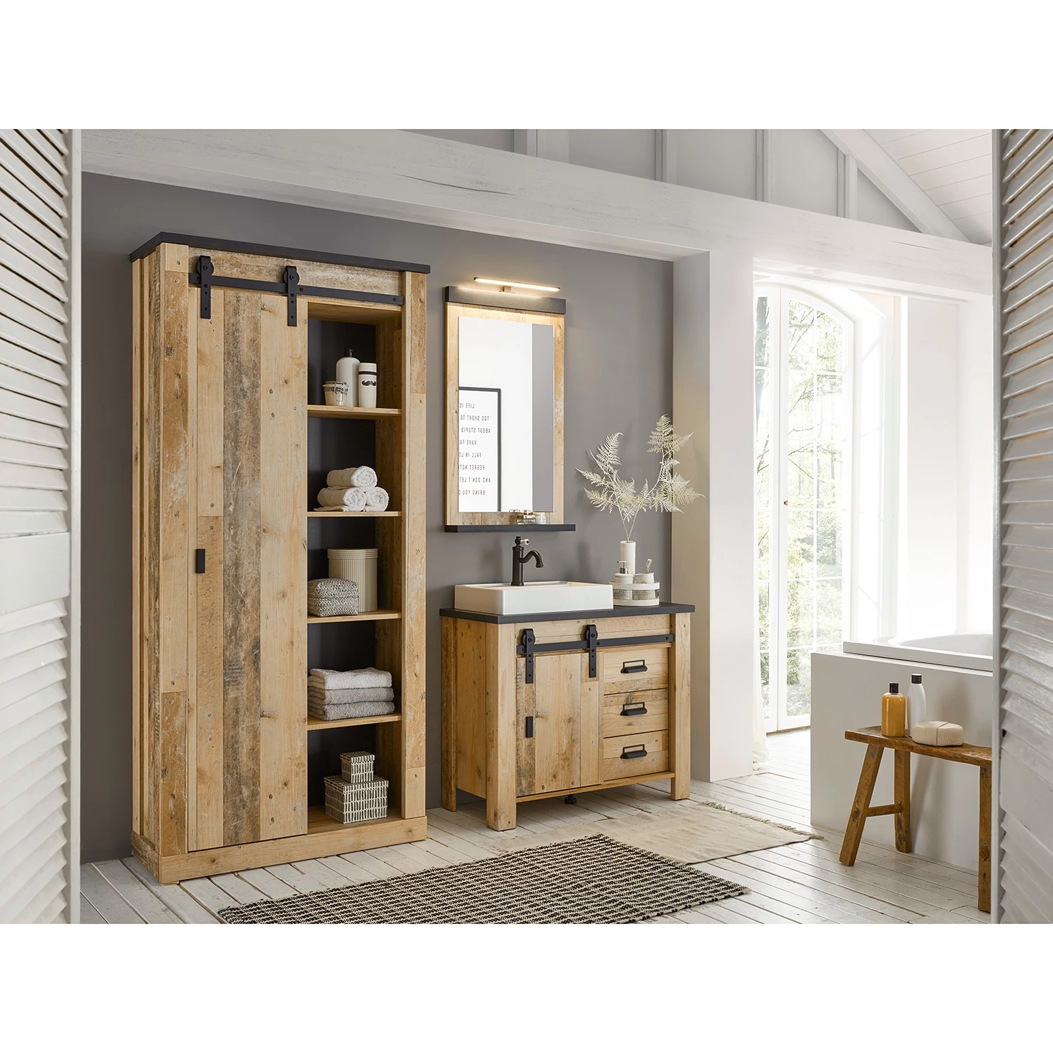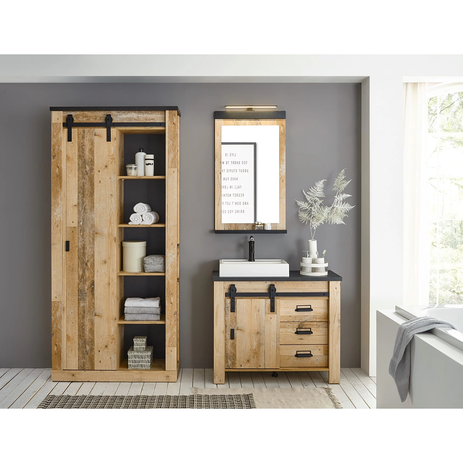 - Contenu de la livraison : Salle de bain comprenant 1 miroir et 1 meuble avec vasque en fonte minérale, avec éclairage et sans accessoires