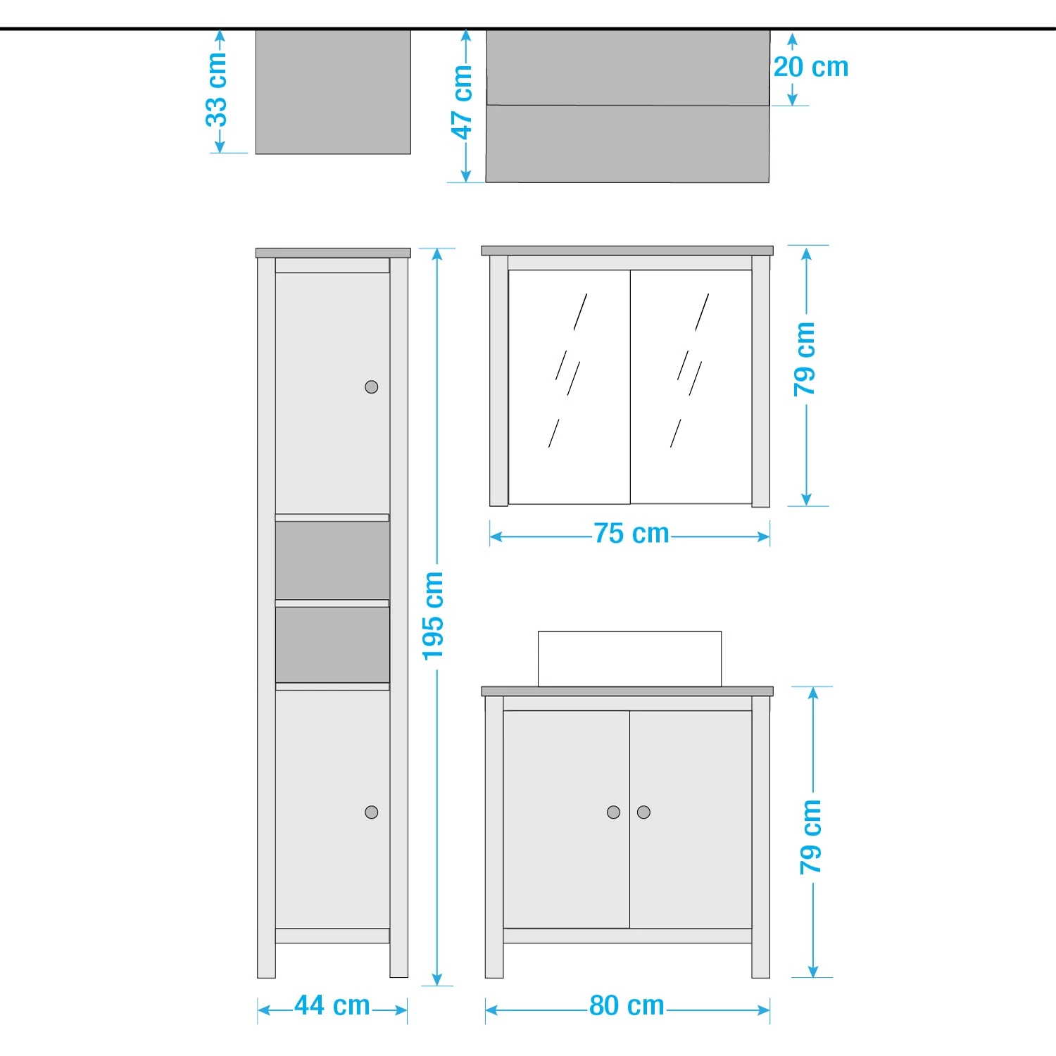 - Armoire de toilette (LxHxP) : 75 x 79 x 20 cm