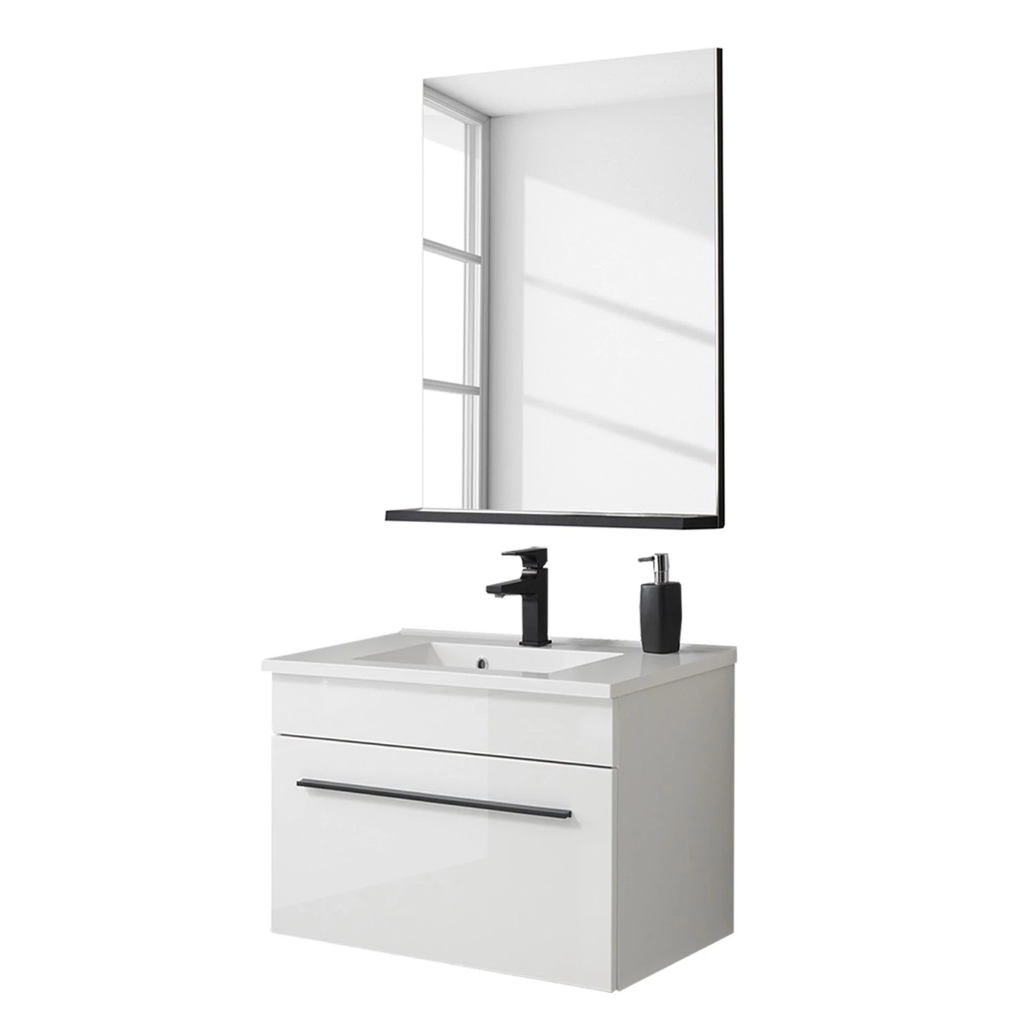 - Contenu de la livraison : Salle de bain comprenant 1 meuble avec vasque en fonte minérale et 1 miroir