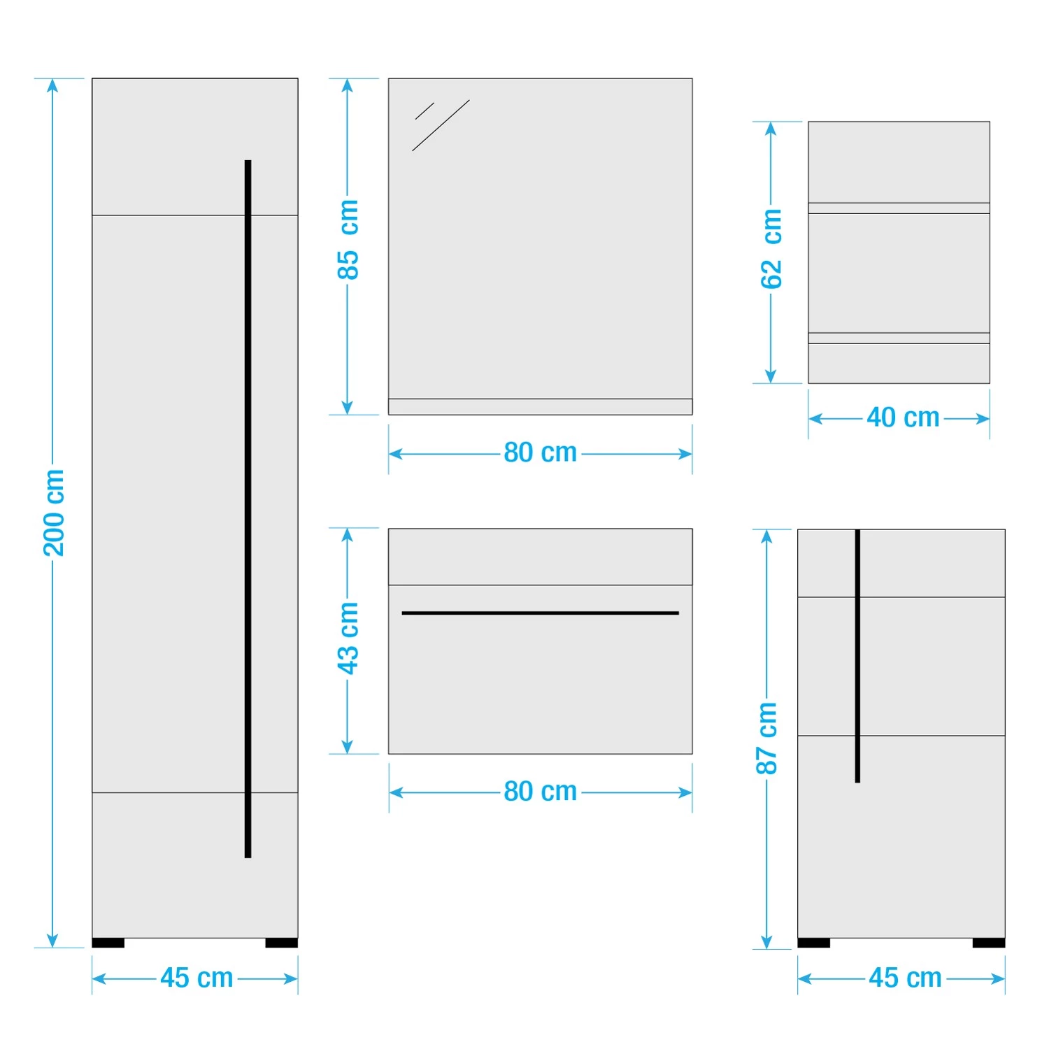 - Meuble avec vasque (L x H x P) : 80 x 43 x 45 cm