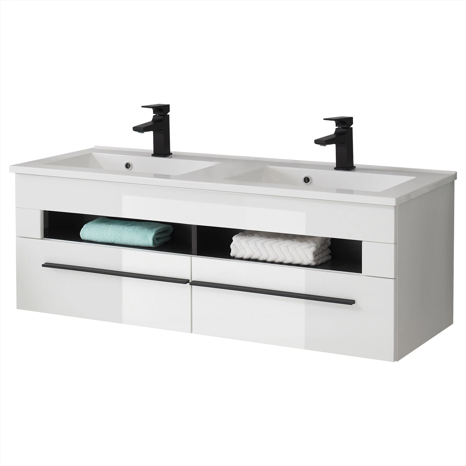 - Meuble avec vasque double (L x H x P) : 120 x 43 x 45 cm