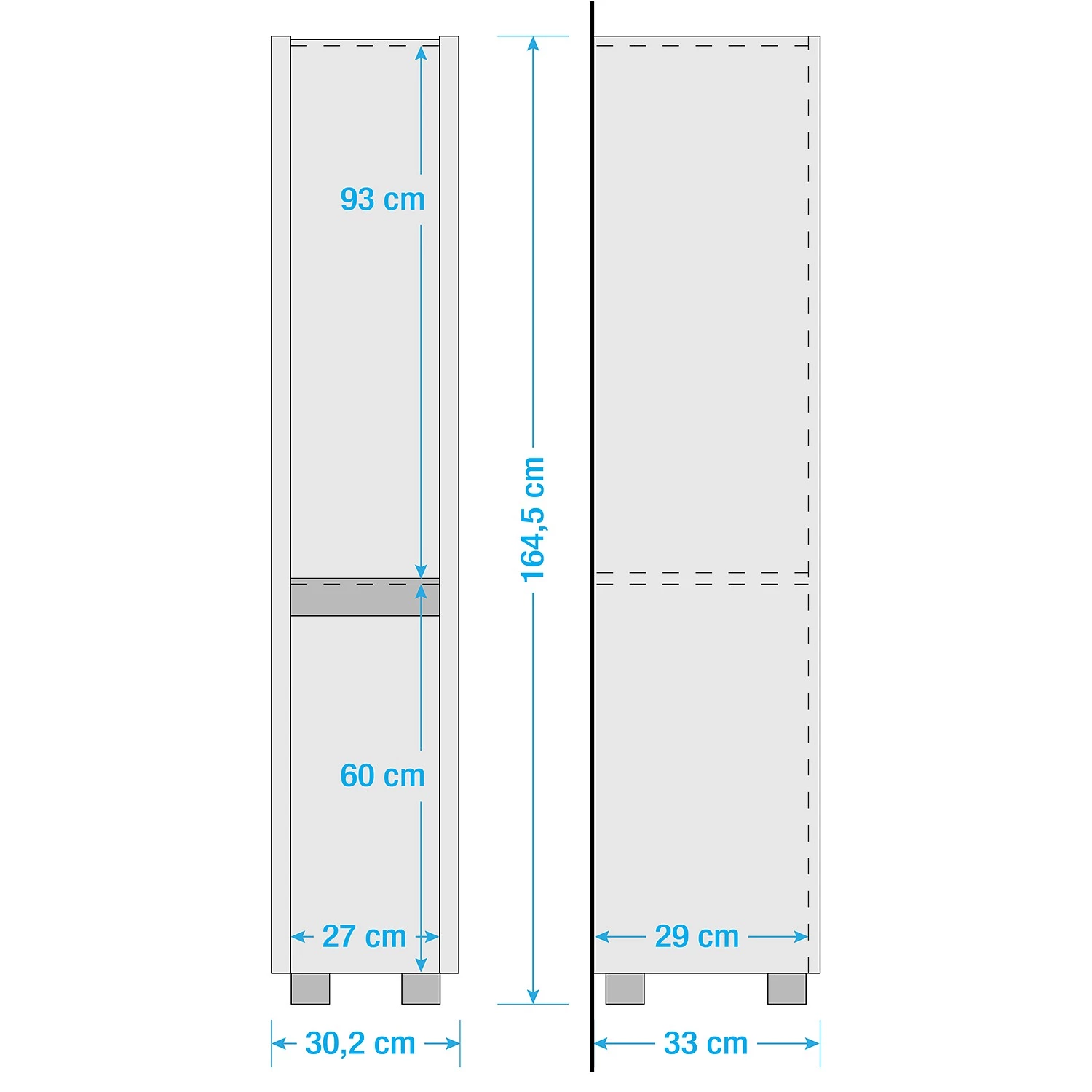 - Dimensions intérieures partie inférieure (LxHxP) : 27 x 60 x 29 cm