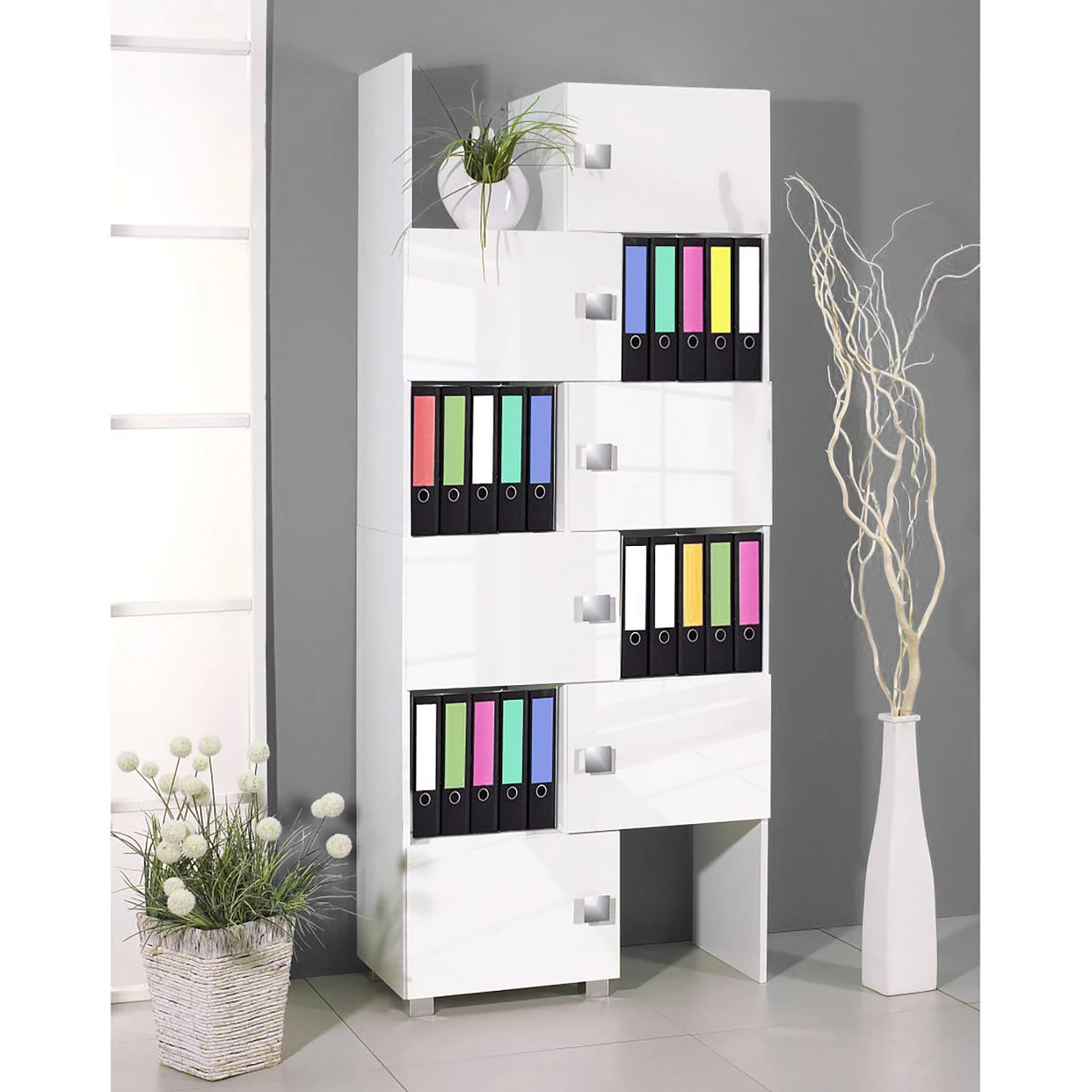 - 2 étagères modulables avec 3 portes chacune