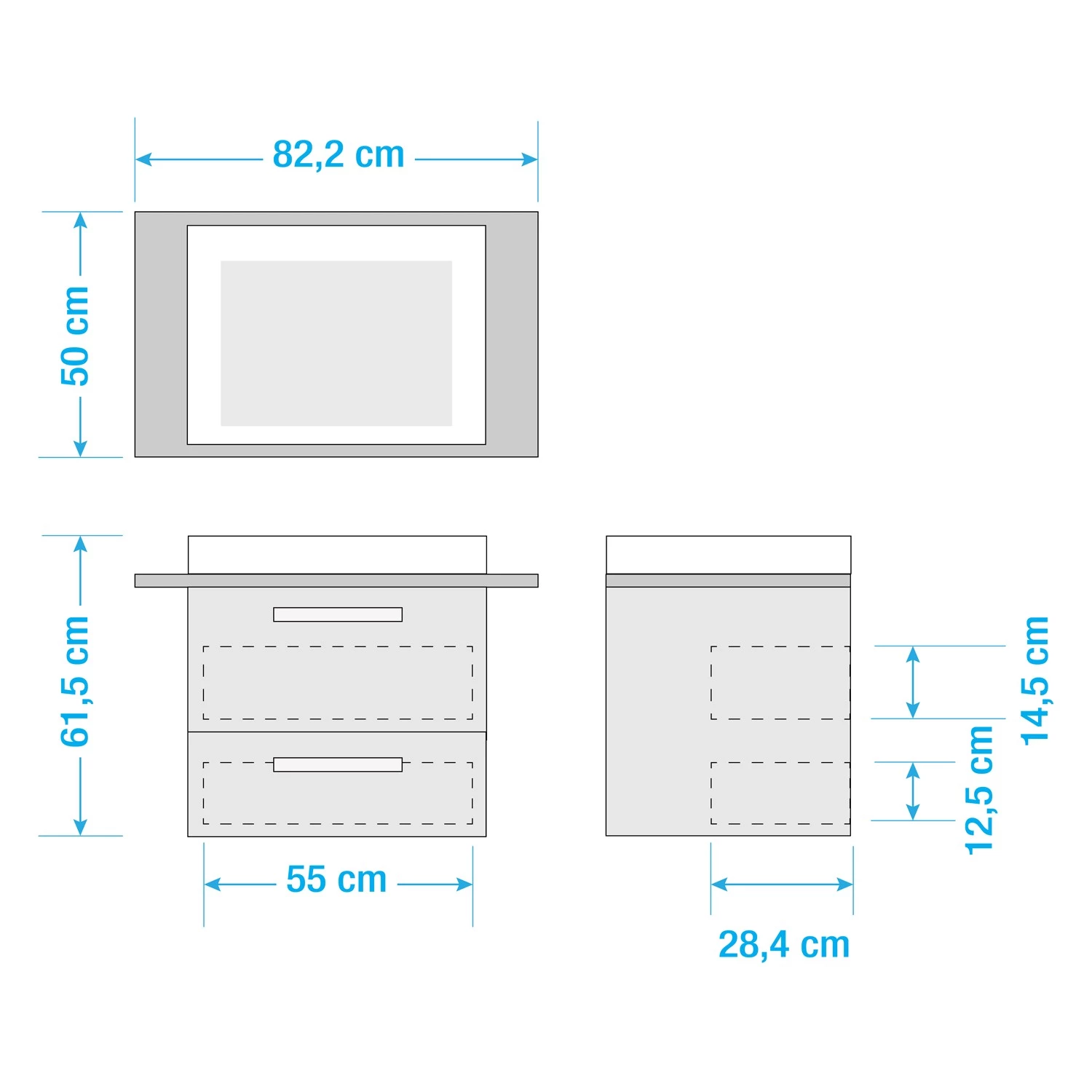 - Tiroir inférieur (LxHxP) : 55 x 12,5 x 28,4 cm