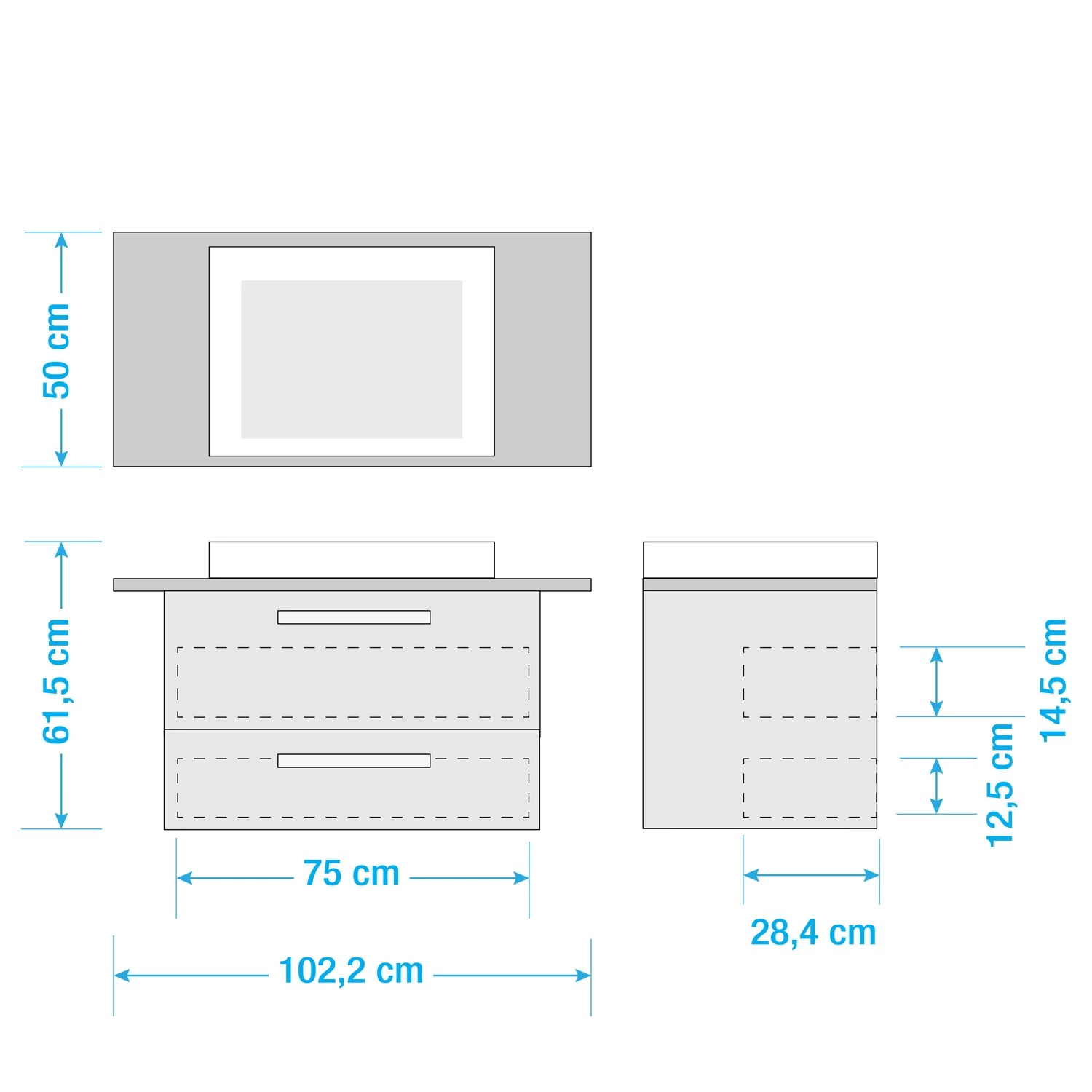 - Tiroir inférieur (LxHxP) : 75 x 12,5 x 28,4 cm