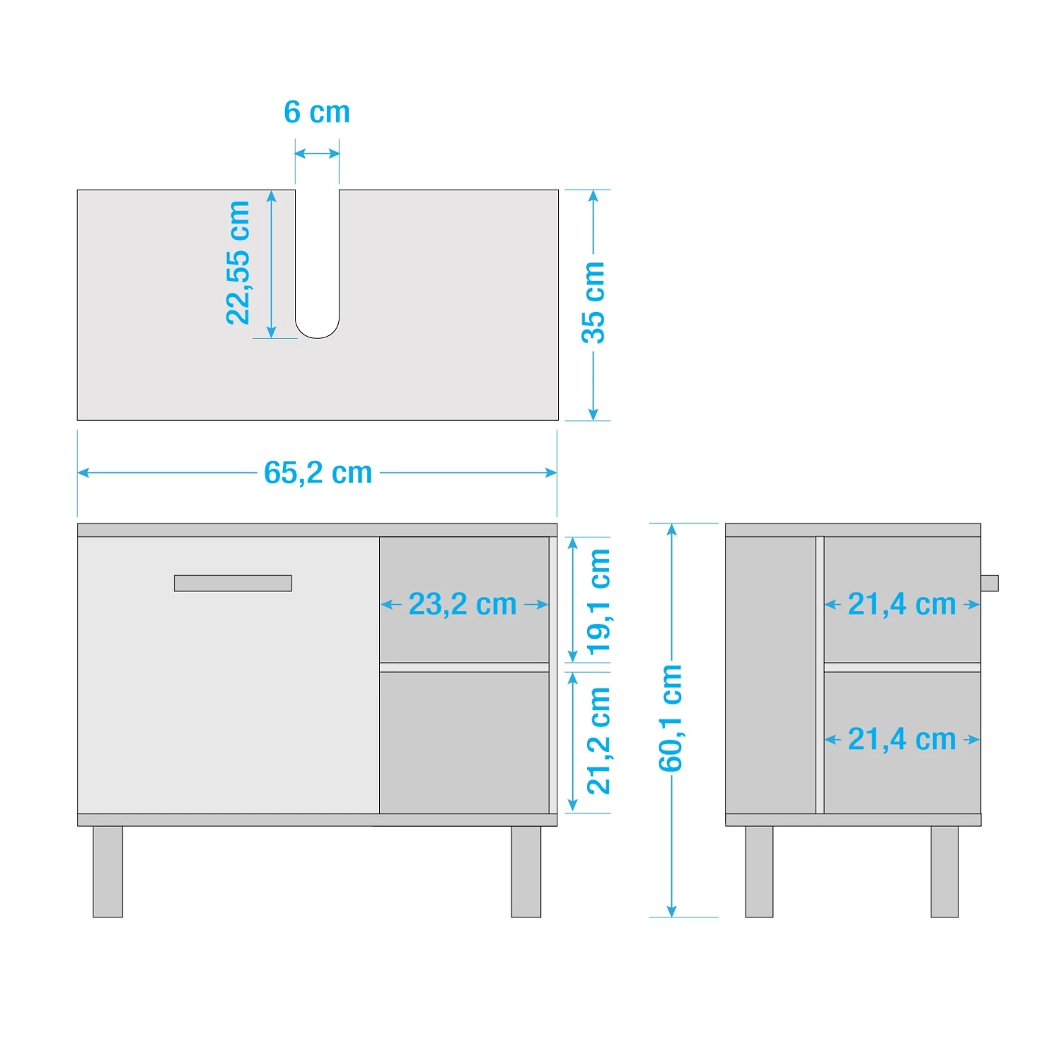 - Autres dimensions : Compartiment ouvert supérieur (L x H x P) : 23,2 x 19,1 x 21,4 cm