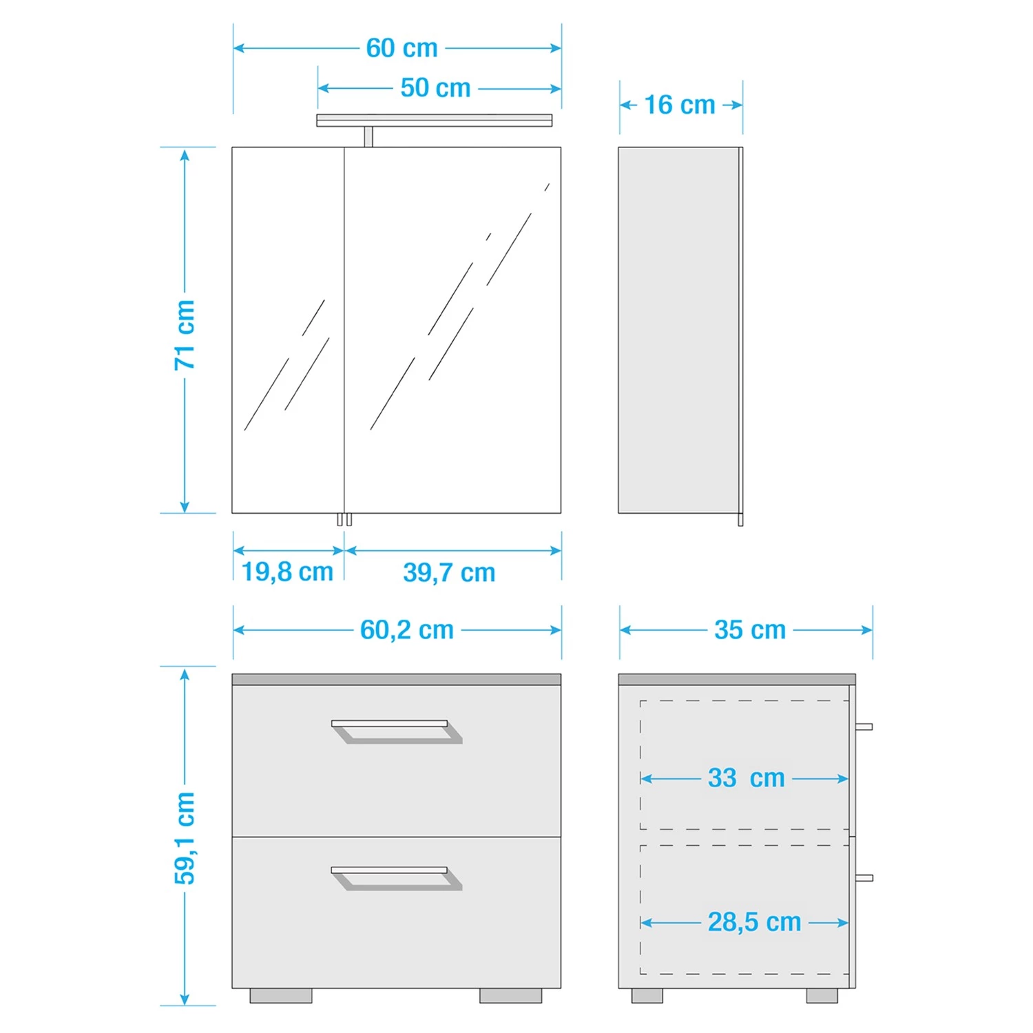 - Meuble sous lavabo (LxHxP) : 60,2 x 59,1 x 35 cm