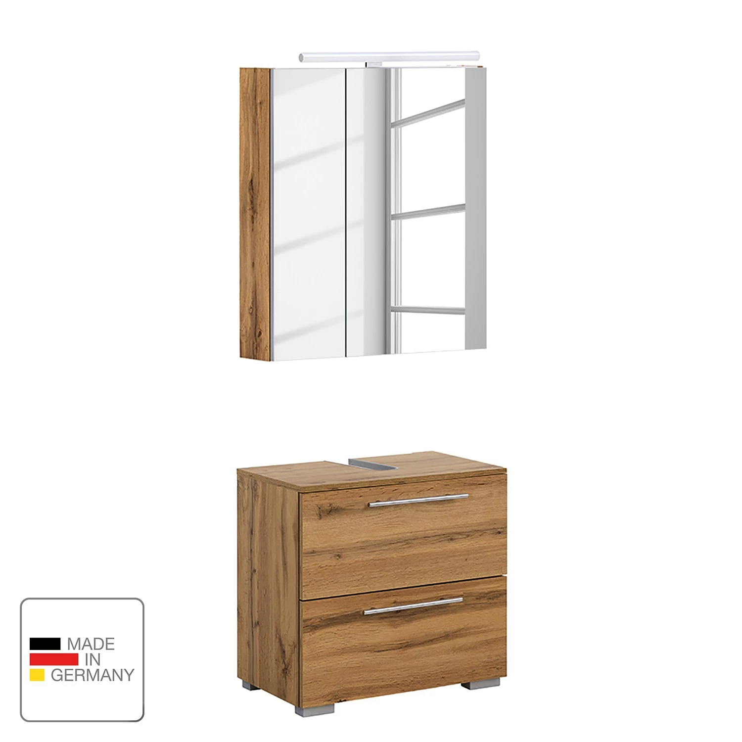 - Contenu de la livraison : Ensemble de salle de bain comprenant 1 meuble sous lavabo et 1 armoire de toilette avec éclairage