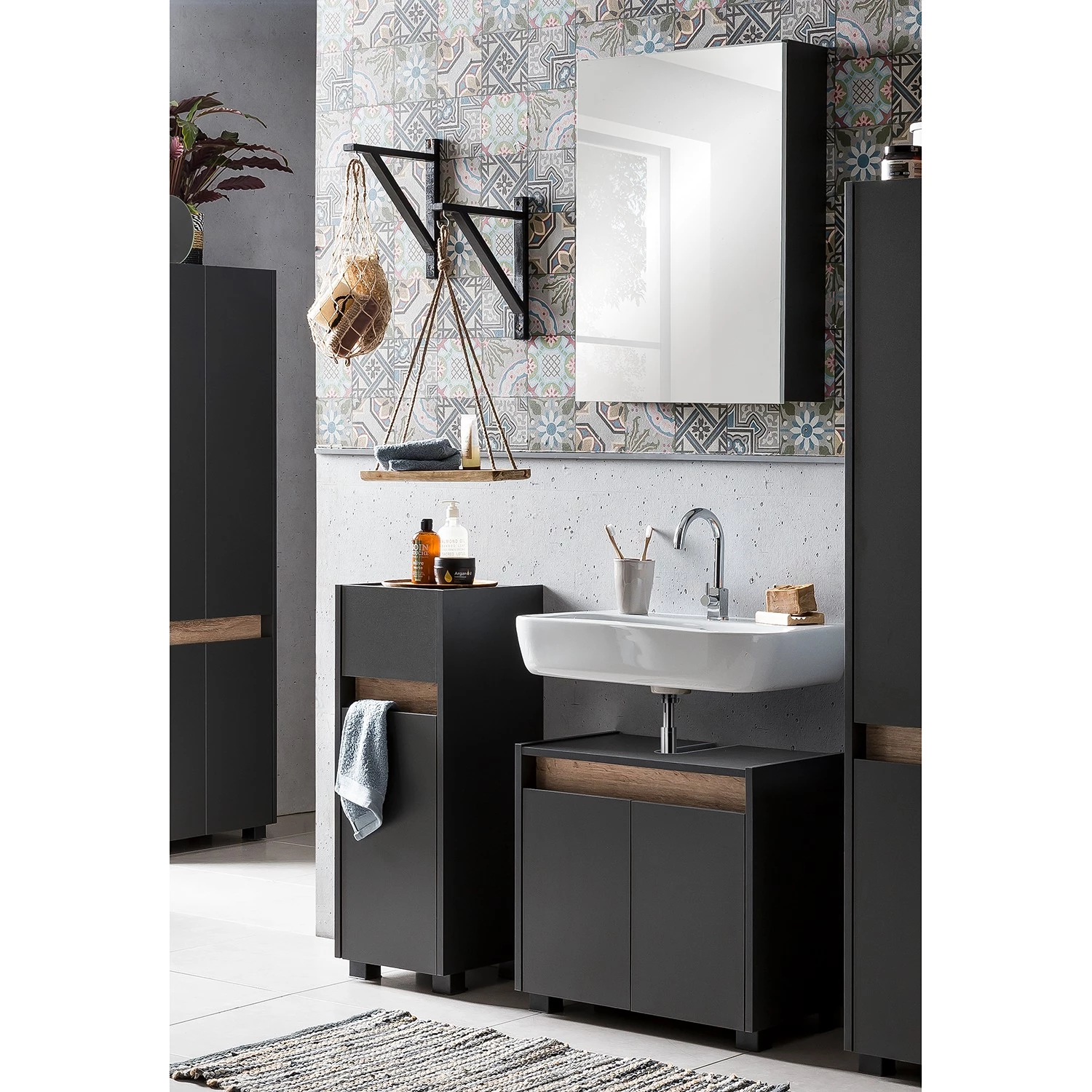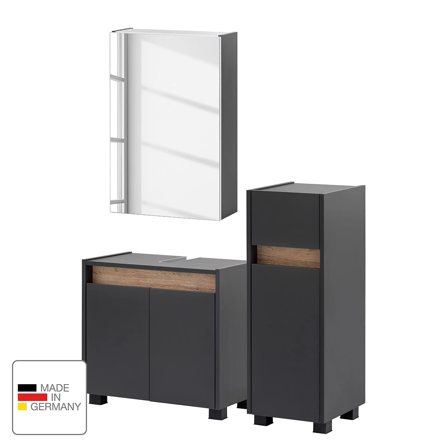 - Contenu de la livraison : Ensemble comprenant 1 meuble sous lavabo, 1 meuble bas, 1 meuble bas et 1 armoire de toilette