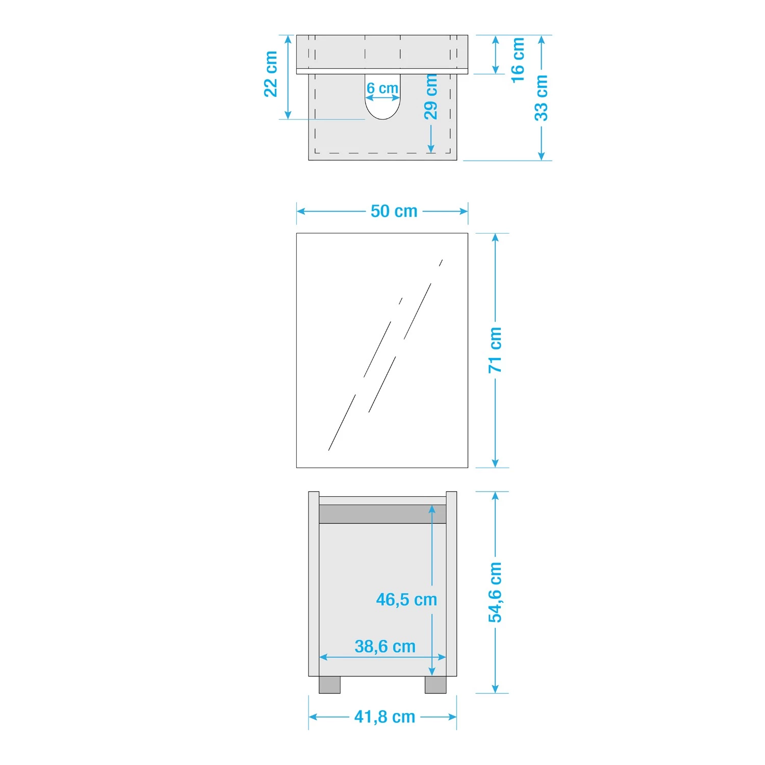 - Armoire de toilette (LxHxP) : 50 x 71 x 16 cm