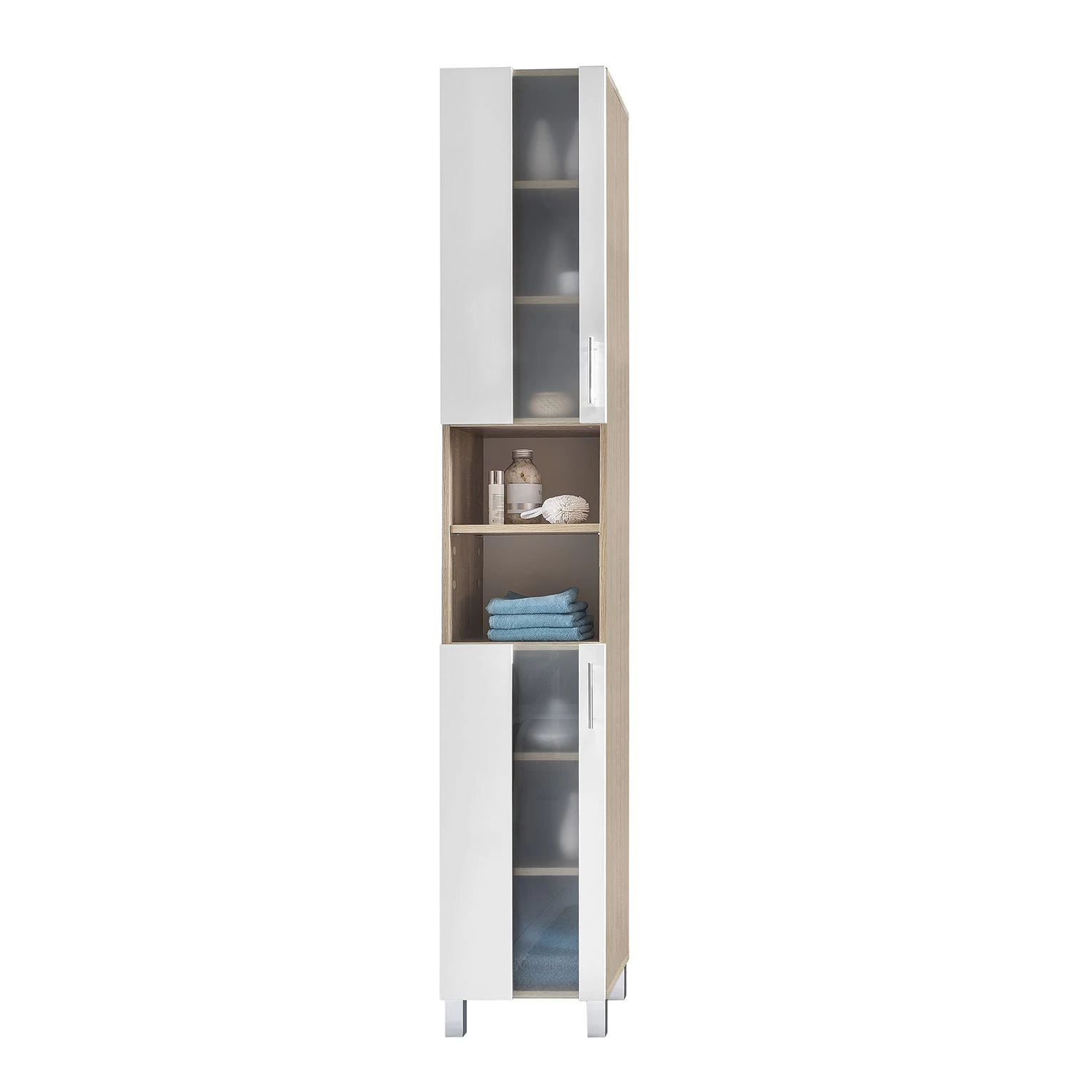 - 2 portes en bois vitrées renfermant chacune 2 étagères