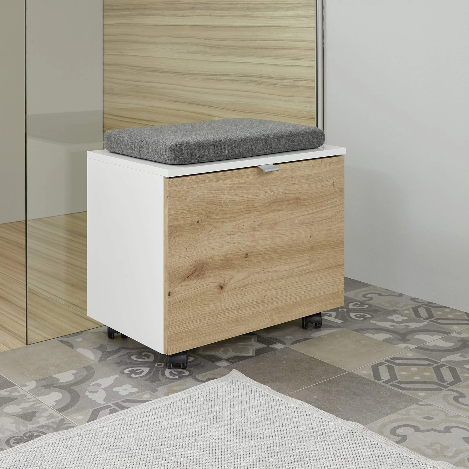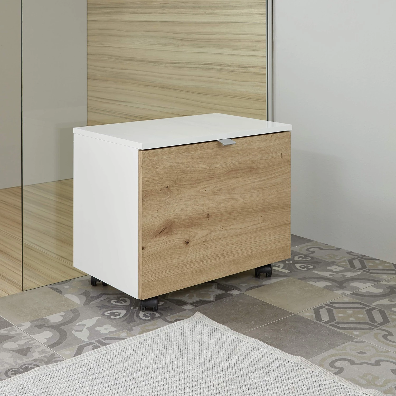- Éléments décoratifs : imitation chêne à nœuds