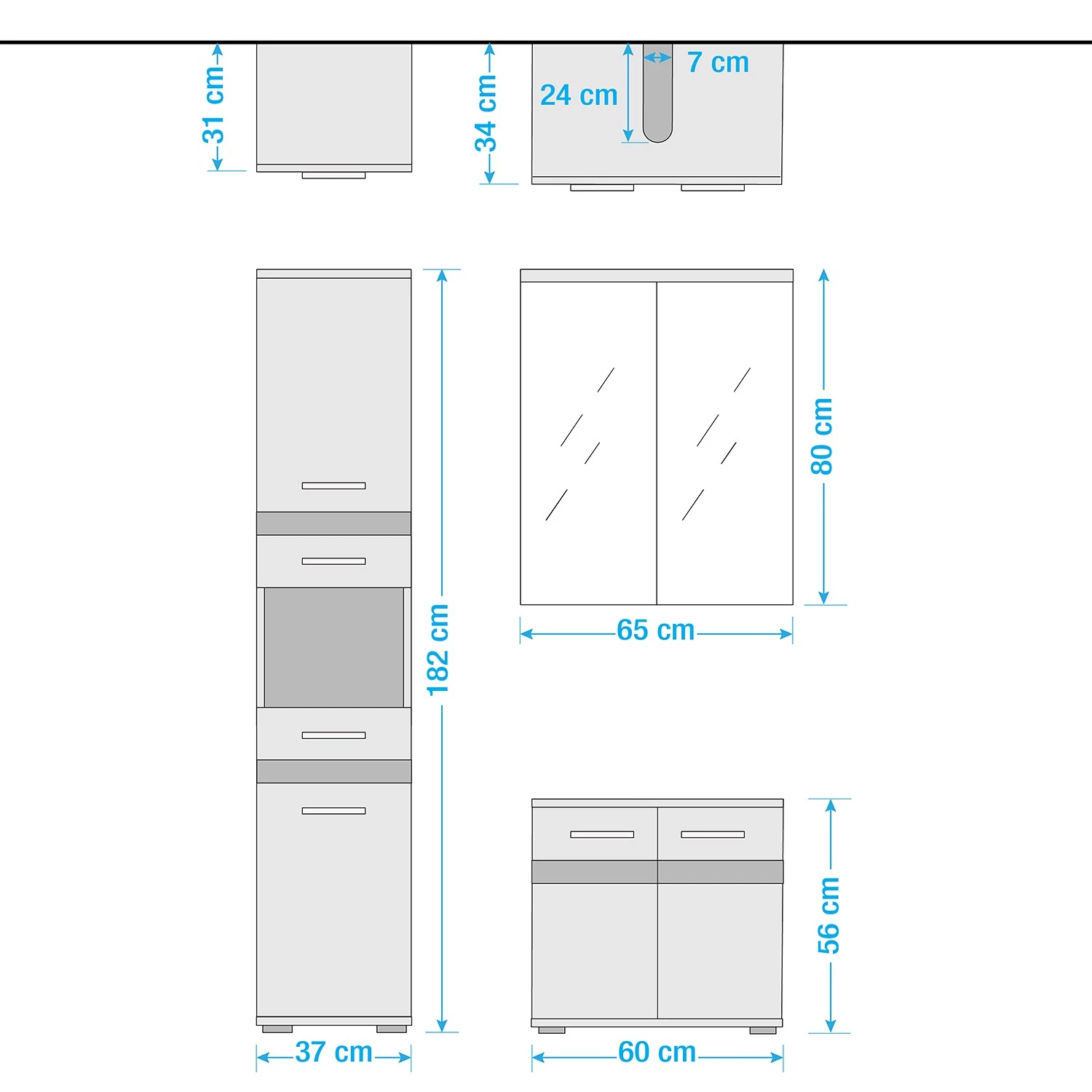 - Armoire de toilette (LxHxP) : 65 x 80 x 21 cm