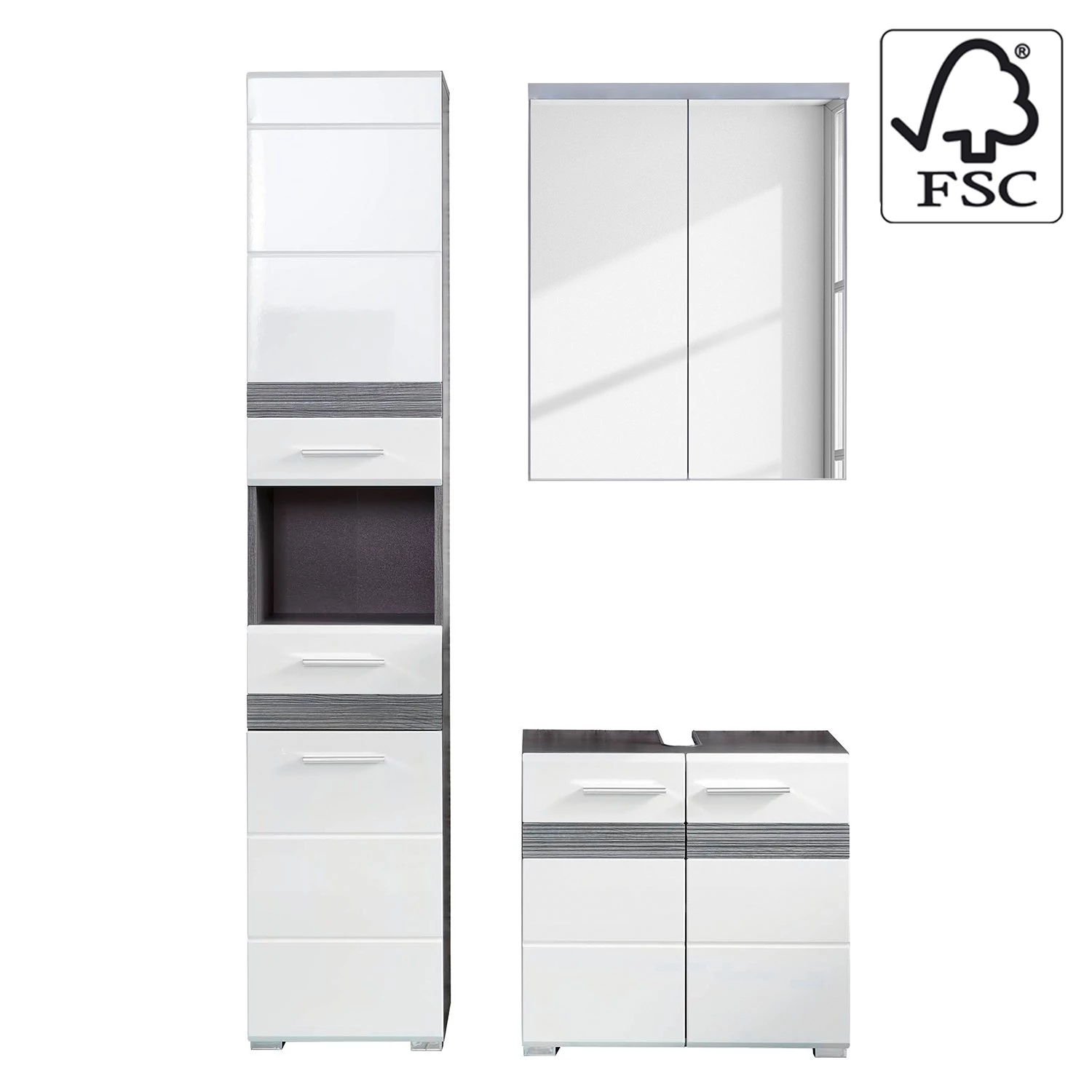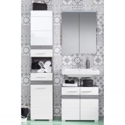 - Contenu de la livraison : Ensemble de salle de bain comprenant 1 colonne de salle de bain, 1 meuble sous lavabo et 1 armoire de toilette sans éclairage
