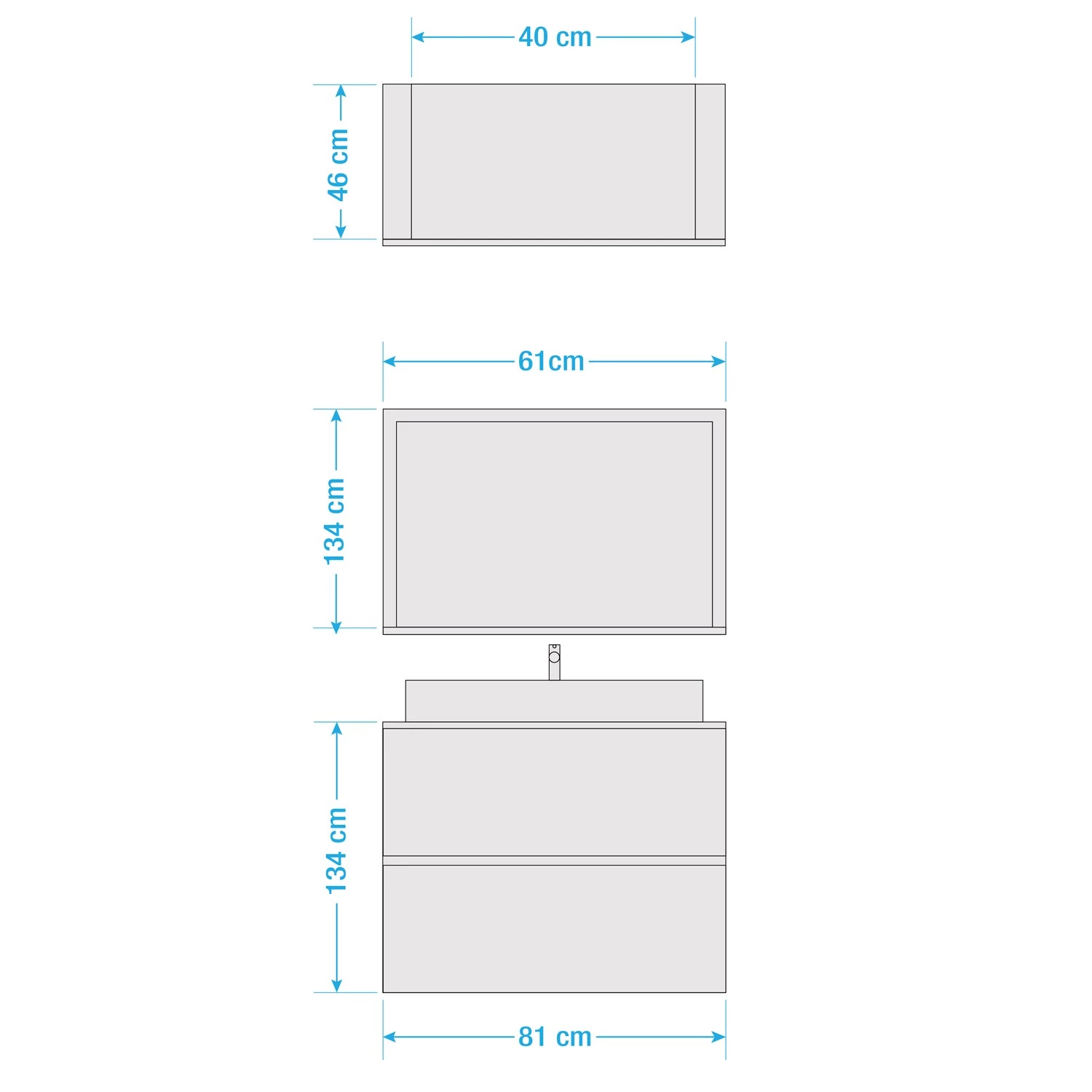 - Meuble sous lavabo (L x H x P) : 61 x 52 x 46 cm