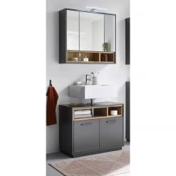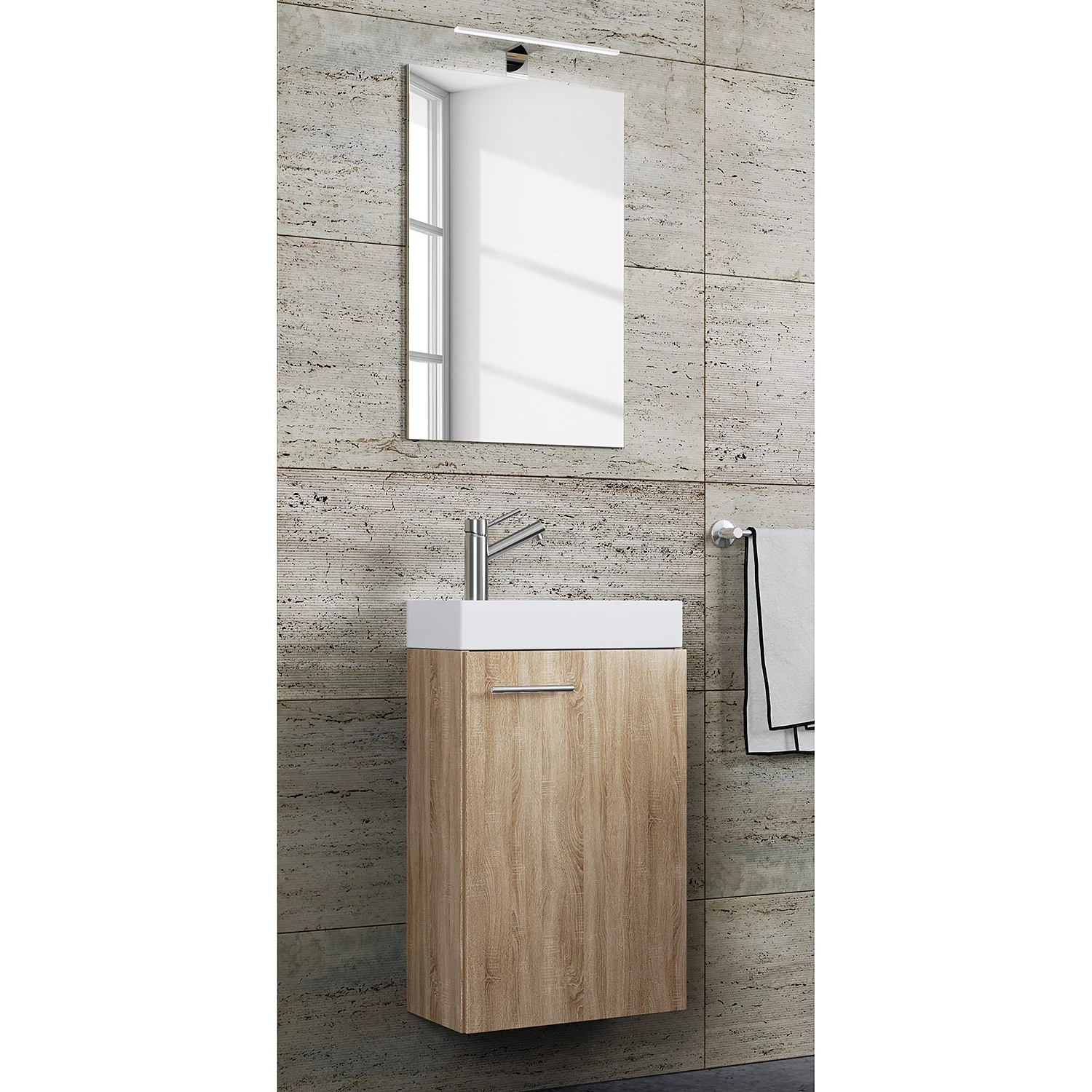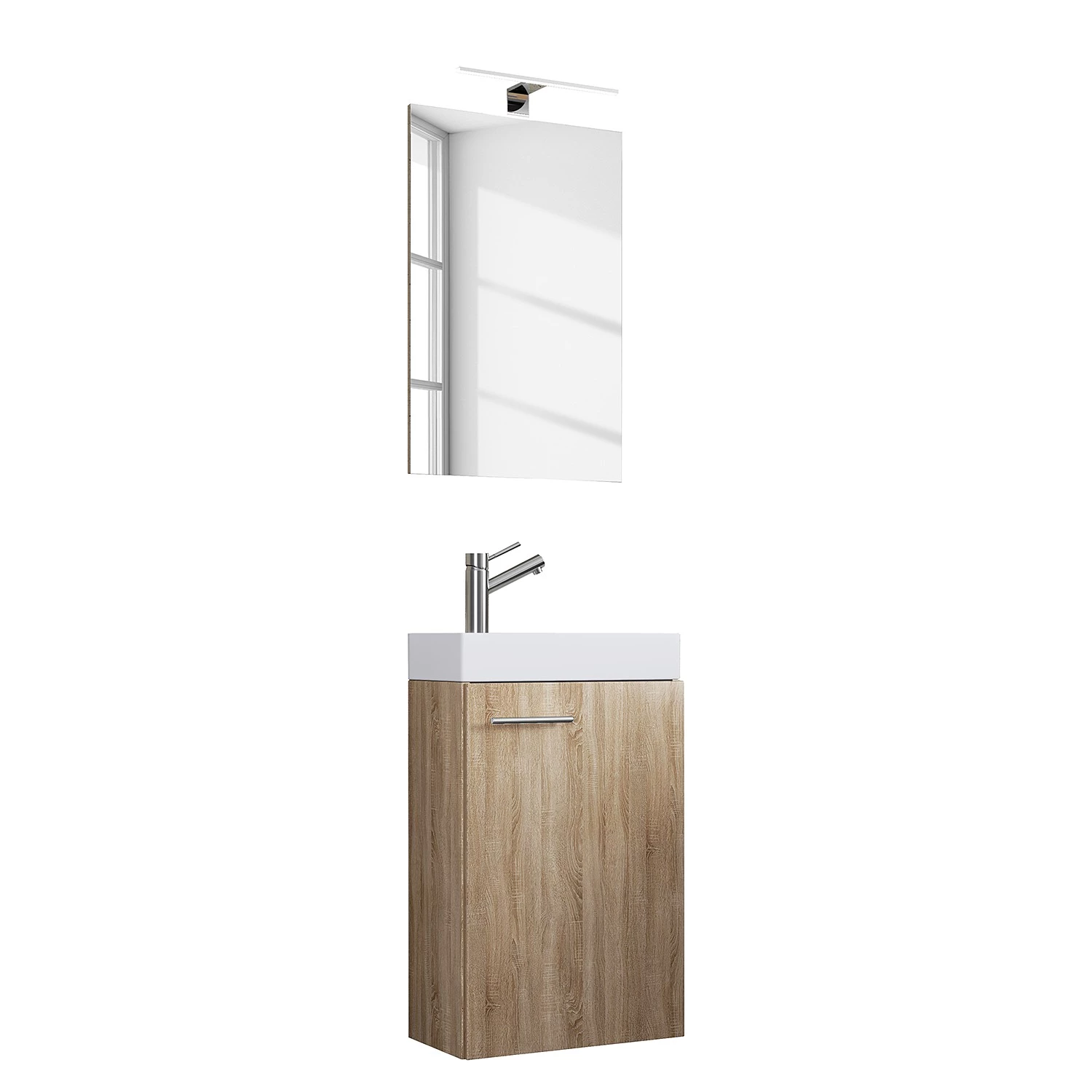 - Contenu de la livraison : Salle de bain comprenant 1 vasque en céramique, 1 meuble sous lavabo et 1 miroir sans éclairage