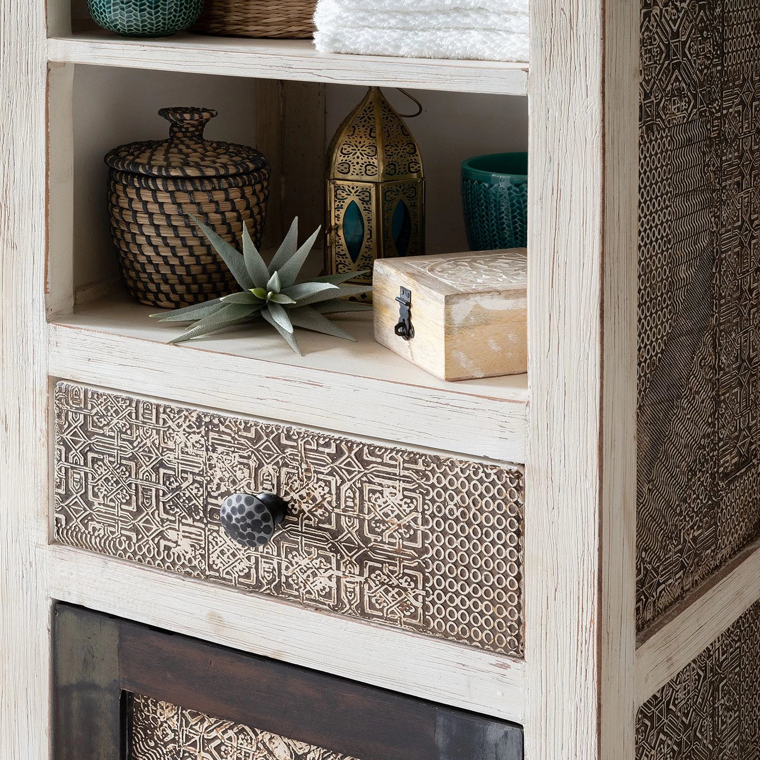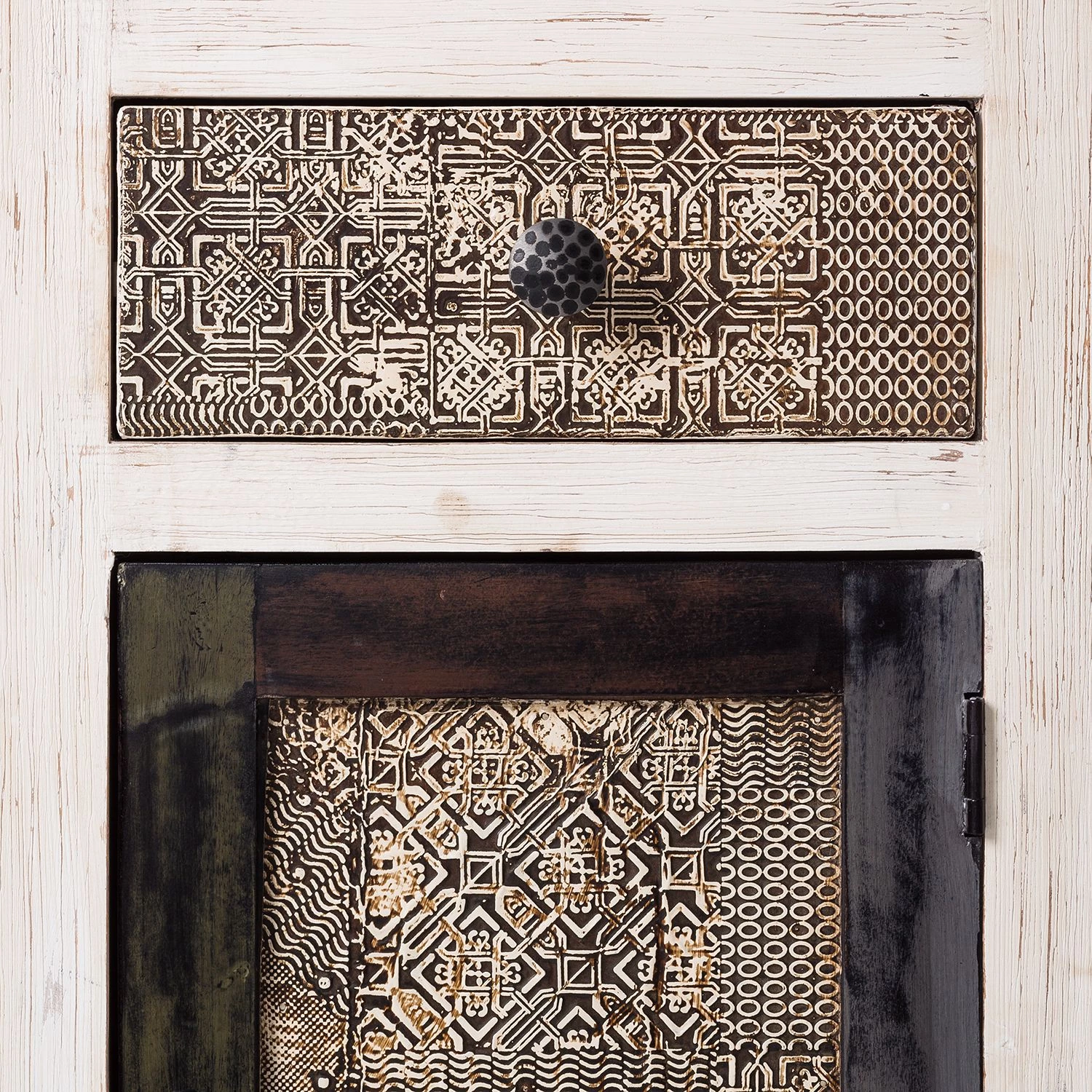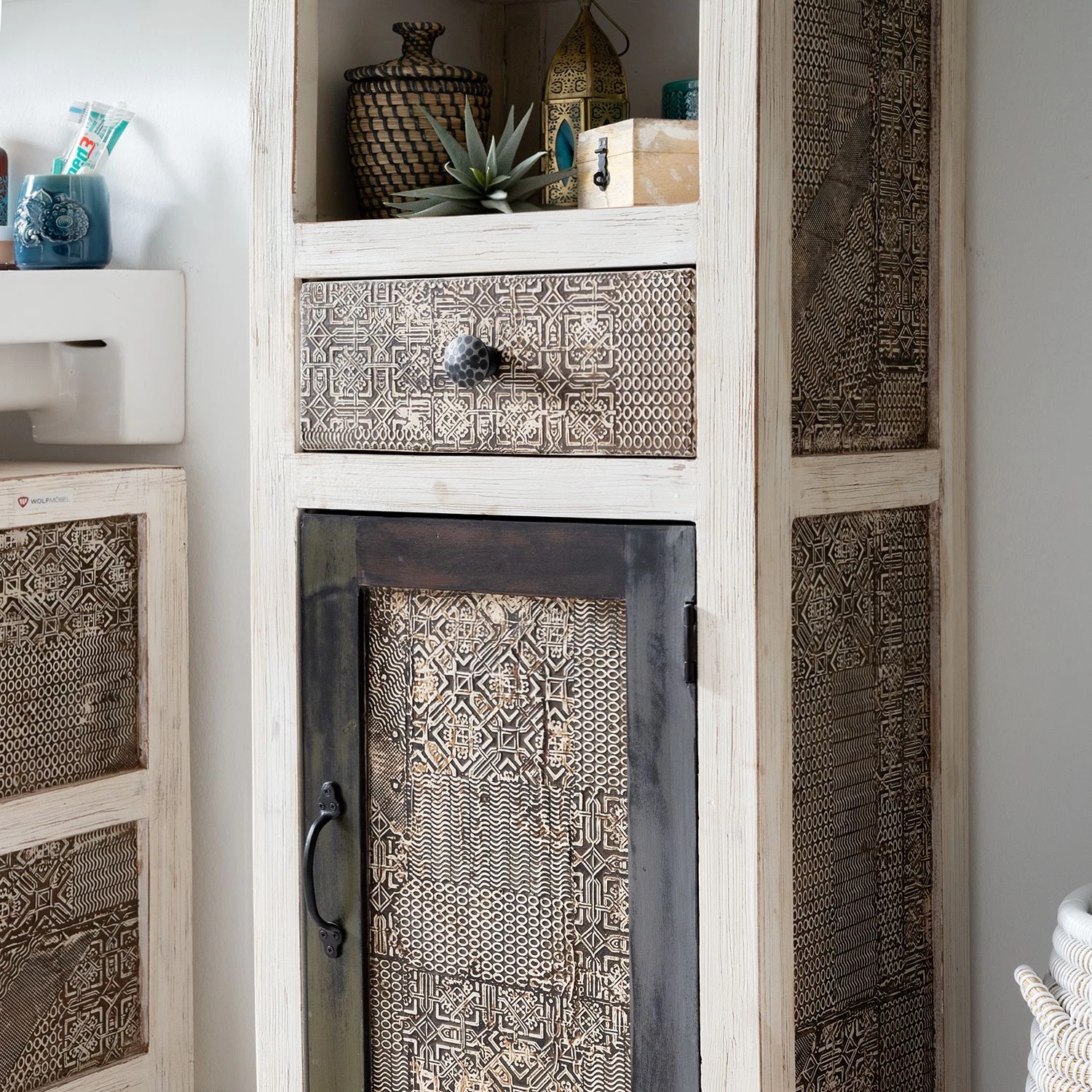 - Façade et côtés : MDF (panneau de fibres à densité moyenne) avec applications métalliques